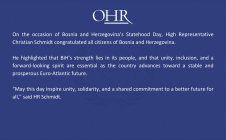 Povodom Dana državnosti Bosne i Hercegovine, visoki predstavnik Christian Schmidt uputio je čestitke svim građanima Bosne i Hercegovine.... »