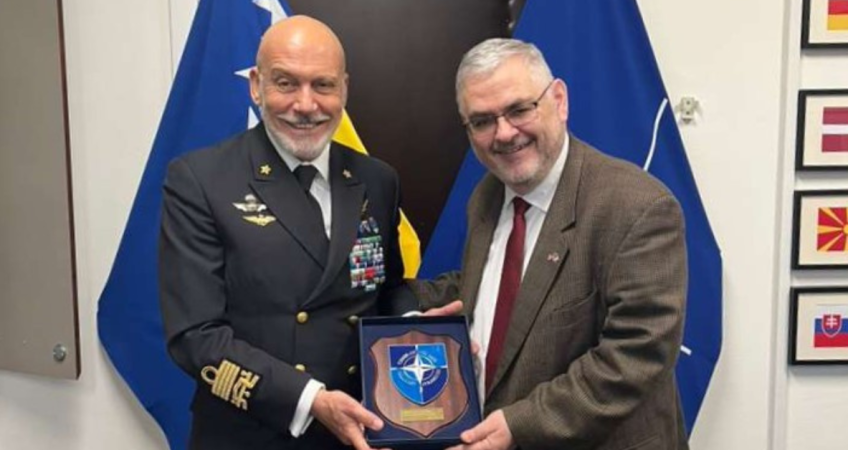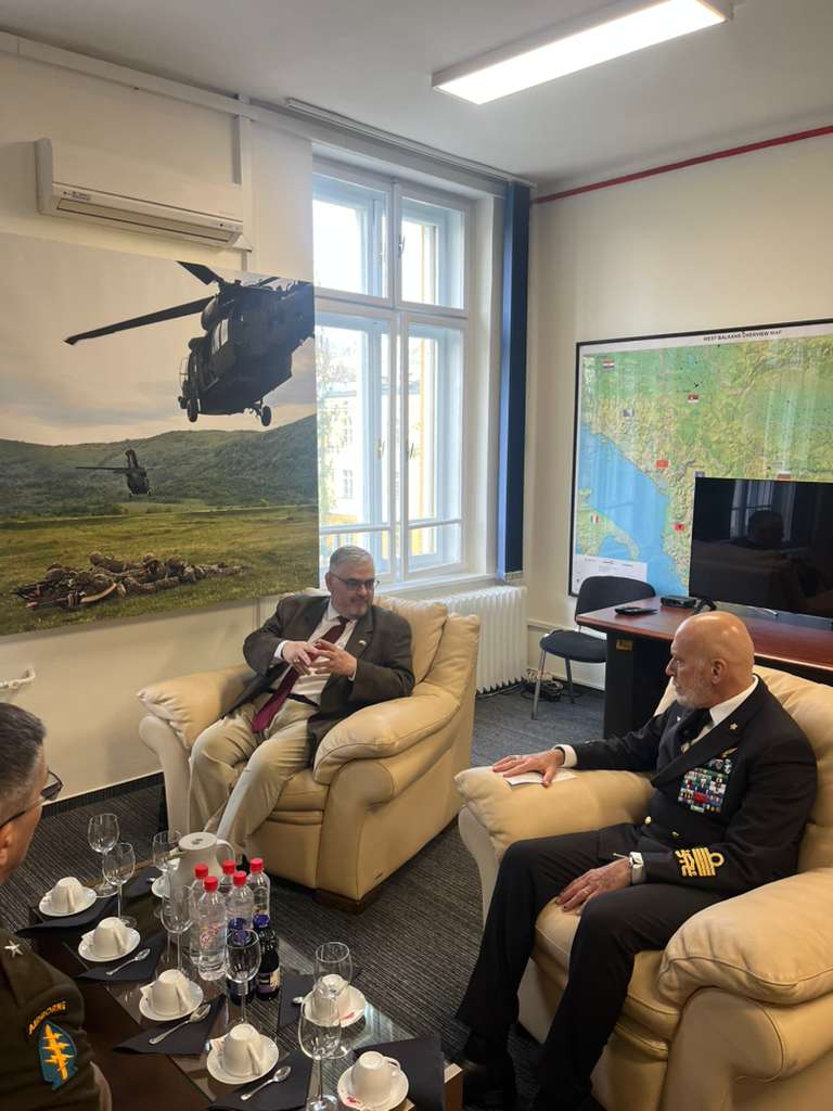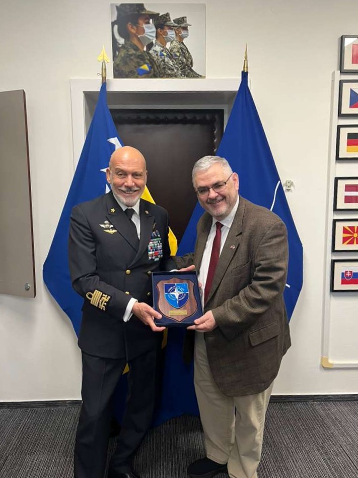 Principal Deputy High Representative Louis Crishock met with the Chair of the NATO Military Committee, Admiral Giuseppe Cavo Dragone at the Ministry of Defense of Bosnia and Herzegovina in Sarajevo. They discussed the current political and security situation in Bosnia and Herzegovina and the region.